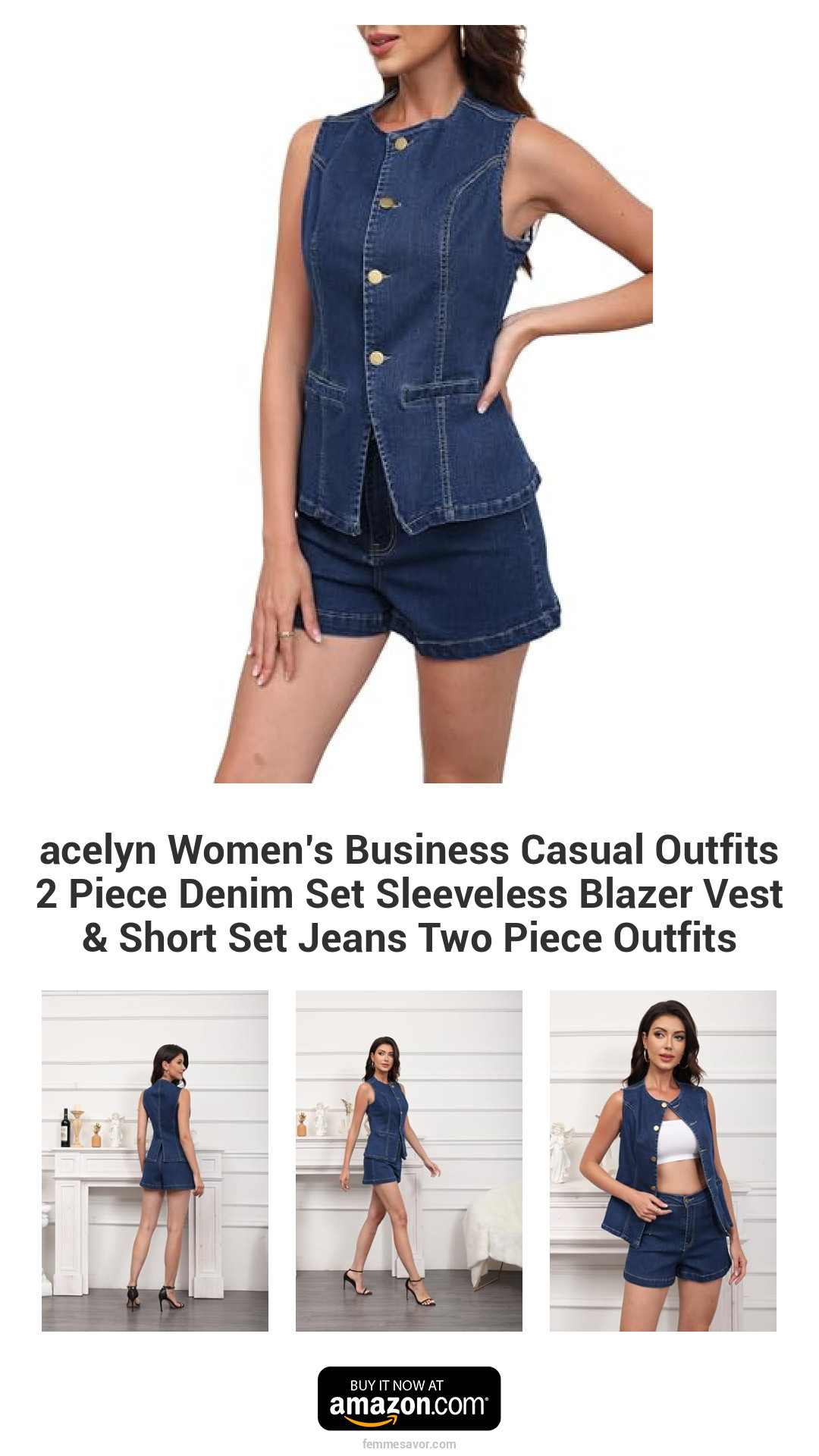 - Feature: Business casual outfits for women/ denim vest/ blazers for women business casual/ denim outfit for women/ blazer sets women 2 piece outfits/ jean vest top for women/ shorts sets women 2 piece outfits/ jeans outfits/ summer two piece outfits for women