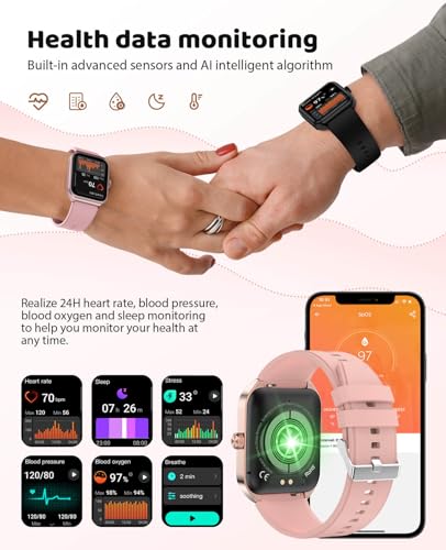 - ?Smart Voice & Dual-mode Bluetooth?Equipped with smart voice assistant and dual-mode Bluetooth technology, the smartwatches for man women instantly become a portable smart control center. Independent calls during exercise, synchronized messages during commuting, and overall control without a mobile phone. The dual-band anti-interference of the smart watch allows you to commute in the city and explore outdoors, and the signal of the watch is always as stable as a rock.