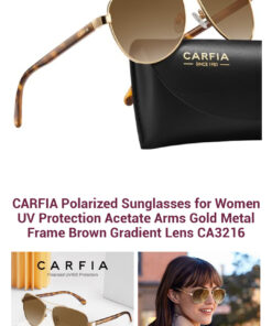 Discover the perfect blend of fashion and functionality with Carfia Women’s Polarized Sunglasses. Designed for the modern woman, these sunglasses feature a sophisticated gold metal frame complemented by stylish brown gradient lenses. The lightweight acetate arms provide comfort without sacrificing style, making them ideal for those long days under the sun. Experience exceptional UV protection, shielding your eyes from harmful rays while enhancing your vision clarity with high-definition polarized lenses. Whether you’re lounging by the pool, hitting the golf course, or enjoying a scenic drive, these sunglasses will keep you looking chic and feeling comfortable. Each pair comes beautifully packaged with a velvet-lined leather case and accessories, ensuring your eyewear stays protected. Elevate your eyewear collection with Carfia – where elegance meets practicality.