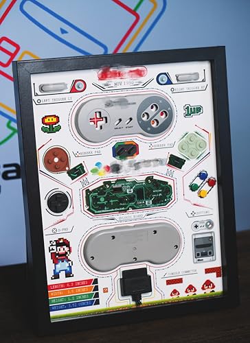 Framed Teardown Wall Art for Nintendo Super Famicom – Retro Gaming Display Made from Original Console Shell – Game Room Decor, Gift for Collectors and Classic Video Game Fans