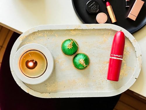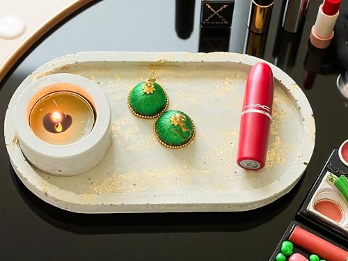 - Handcrafted Design: Oval concrete tray with elegant gold flakes and integrated tealight holder, adding a luxurious touch to any space