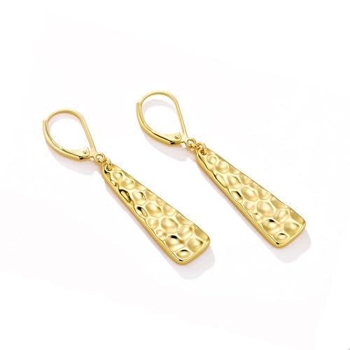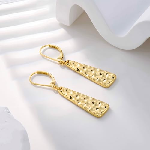 - Gold Dangle Drop Earrings Quality Material: The leverback clasps are crafted in hypoallergenic sterling silver, and hammered bar drops are made of premium brass, plated with shiny 14k gold, long-lasting color rention, and not easy to tarnish, rust, or fade, friendly to those who have sensitive ears and won't turn your ears green.