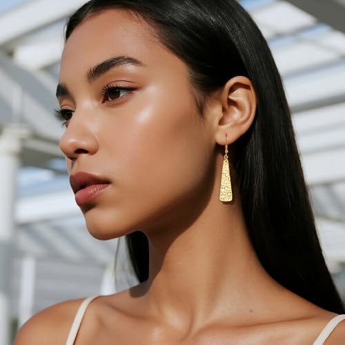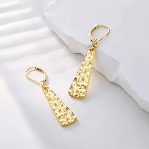 - Lightweight Gold Teardrop Bar Earrings Design: Trapezoidal hammered bar earrings, 10x30mm, 5g in weight, which is minimalist and stylish.Classic gold dangle earrings feature long bar drop and leverback clasp design, twinkling in light and gleaming, attractive in appearance, durable and lightweight for all-day wear.