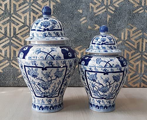 Handmade Ceramic Ginger Jar Set, Chinoiserie Set, Bleu-Blanc Jar Set, Double Jar Set
