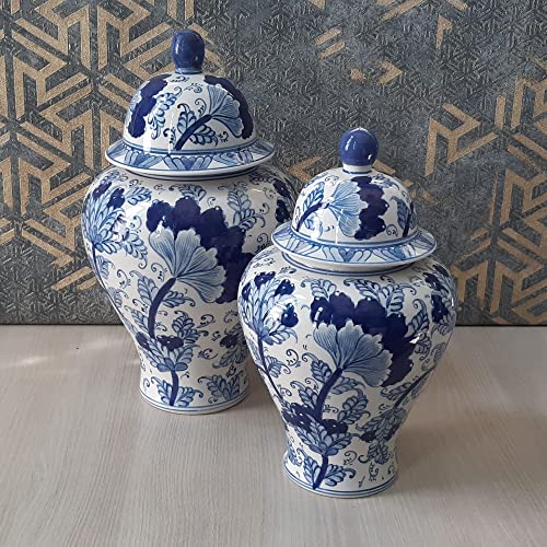 Handmade Ceramic Ginger Jar Set, Chinoiserie Set, Bleu-Blanc Jar Set, Double Jar Set