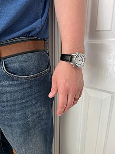 - This stainless steal watch with black leather band can be added to great gifts for a blind person and a talking clock for elderly loved ones as well! Also, it’s a great ladies talking watch and atomic watch for men. This is a nice talking clock for visually impaired, and it’s great with visual aids for macular degeneration of loved ones. You could buy two for a set of his and hers watches! A women talking watch and talking watches men will love!