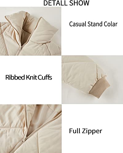 Newffr Womens Quilted Cropped Puffer Jacket Long Sleeve Full Zipper Pocketed Warm Short Bubble Coats