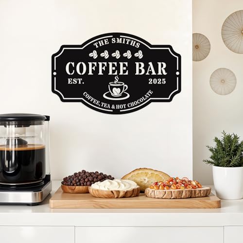 - Custom Name and Date: Personalize your coffee bar with your family name and the year it was established. This custom coffee sign makes a unique statement and adds a warm, personal touch to your kitchen, coffee nook, or home caf? area.