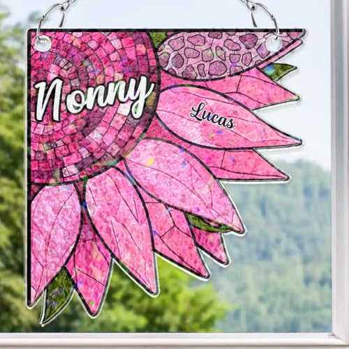- ? HEARTWARMING MESSAGE FOR GRANDMA: This corner sun catcher is more than just decoration–it’s a celebration of the bond between grandma and her grandkids. With radiant sunflowers and custom names, it symbolizes sunshine and love from her cherished family.