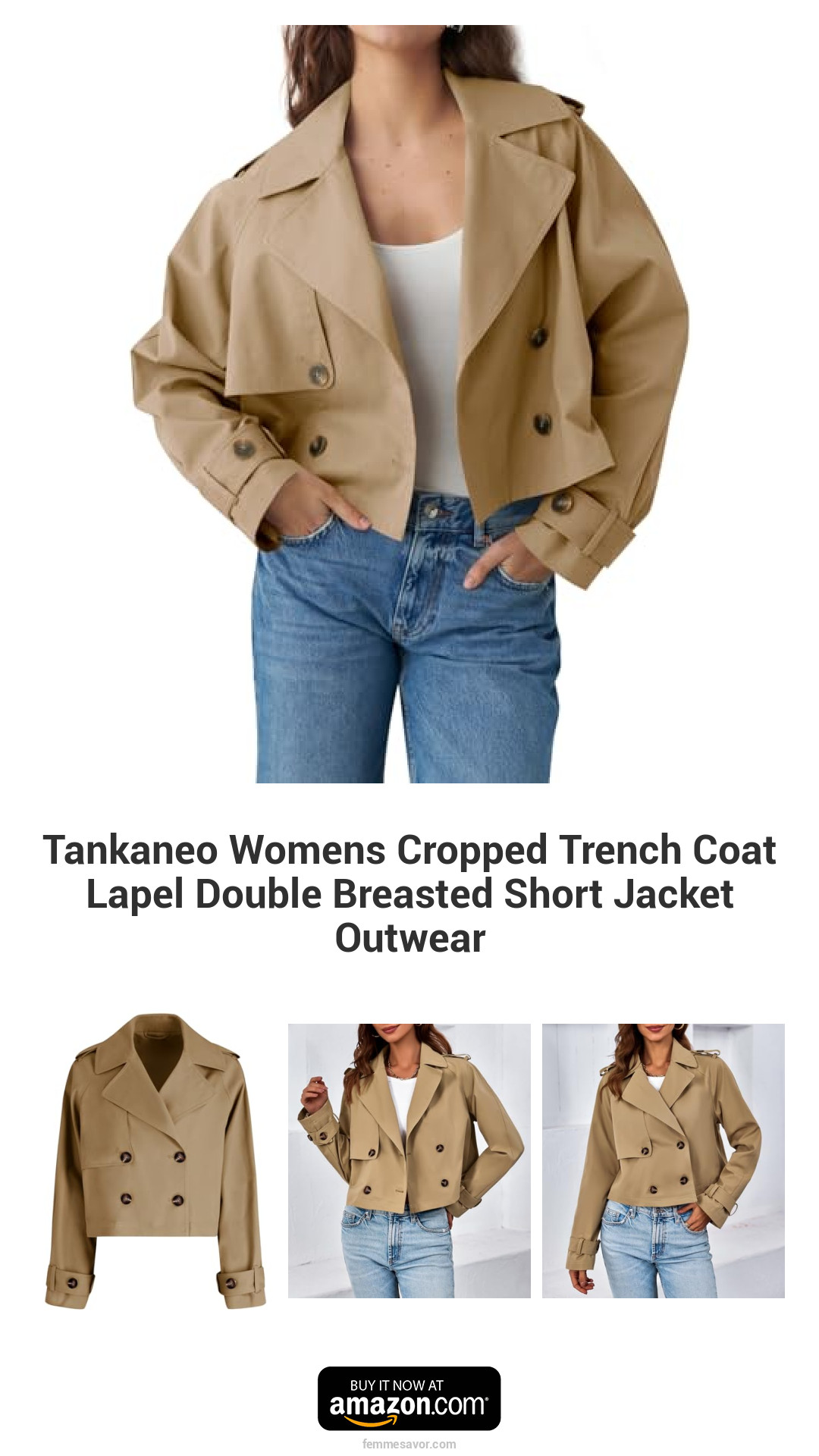 You ever stumble into your closet, and it’s like, everything looks like yesterday’s news? I mean, there’s only so many ways you can style a plain t-shirt, right? That’s why I was on the hunt for something fresh, something like, a little bit edgy but still cozy for those crisp fall days. Then, BAM! I found it! This Tankaneo Women’s Cropped Trench Coat in khaki. Seriously, it’s a lifesaver!