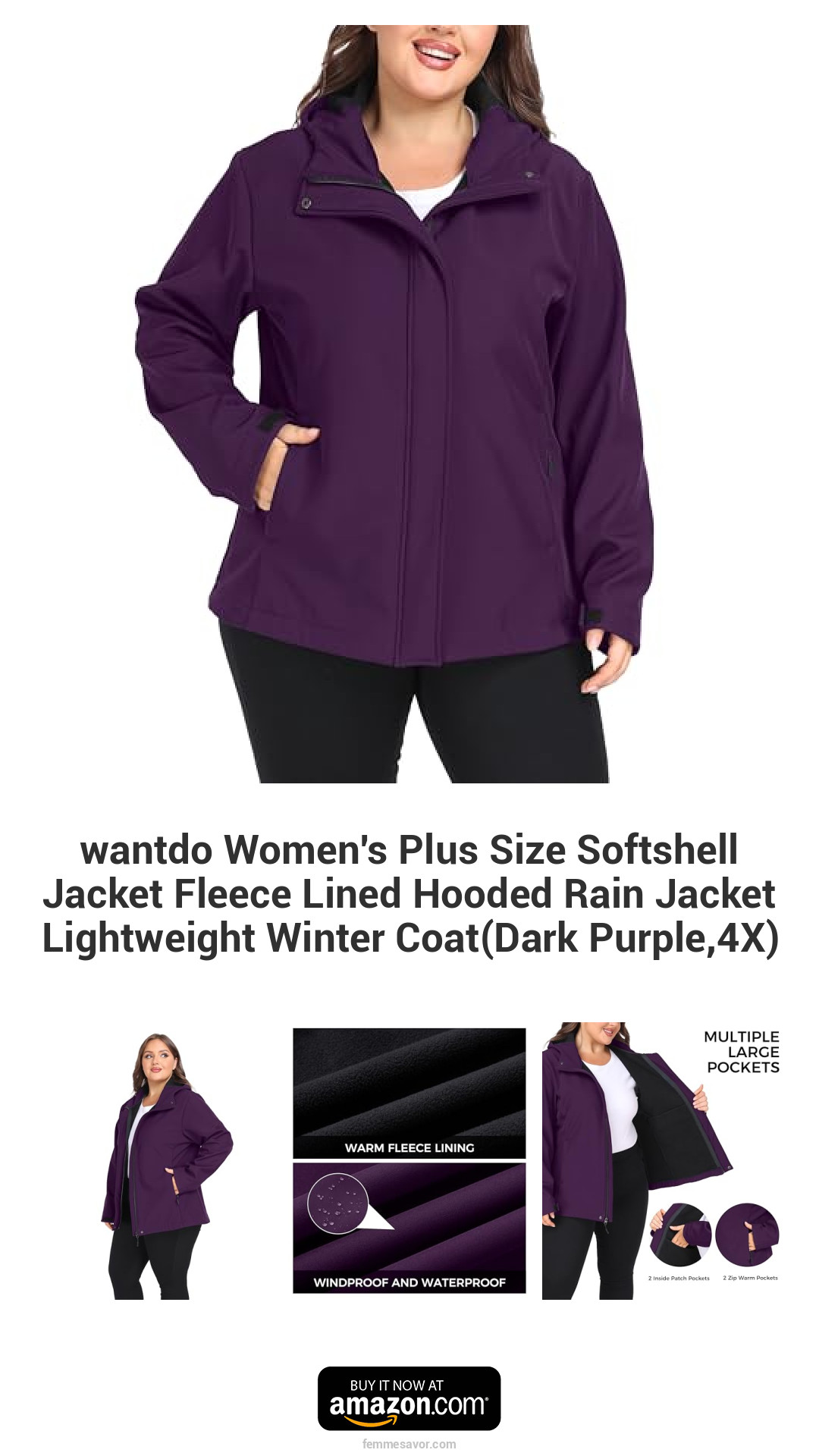 Wantdo Women’s 4X Dark Purple Fleece Lined Hooded Softshell Jacket