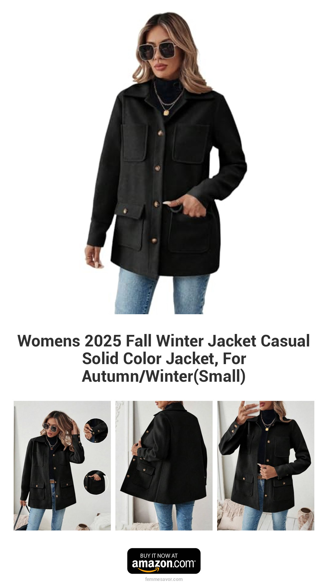 Chic Black Womens Fall Winter Jacket for Effortless Style – Size Small
