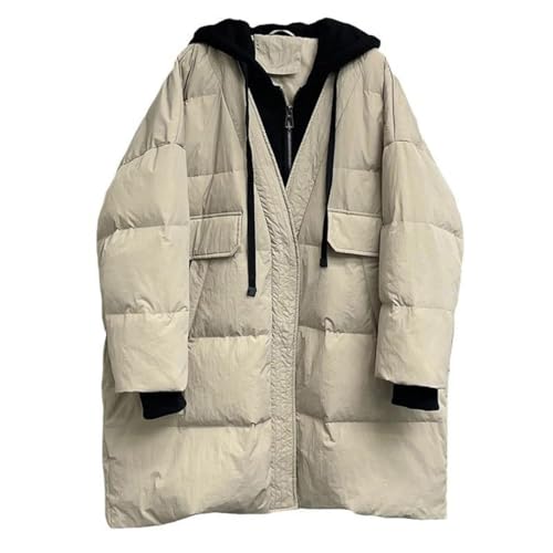 Women's White Oversize Down Jacket with Hood Fake Two-Piece Casual Coat